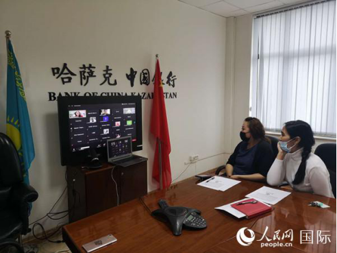 哈萨克中国银行员工与应聘学生进行在线交流(孔子学院供图)